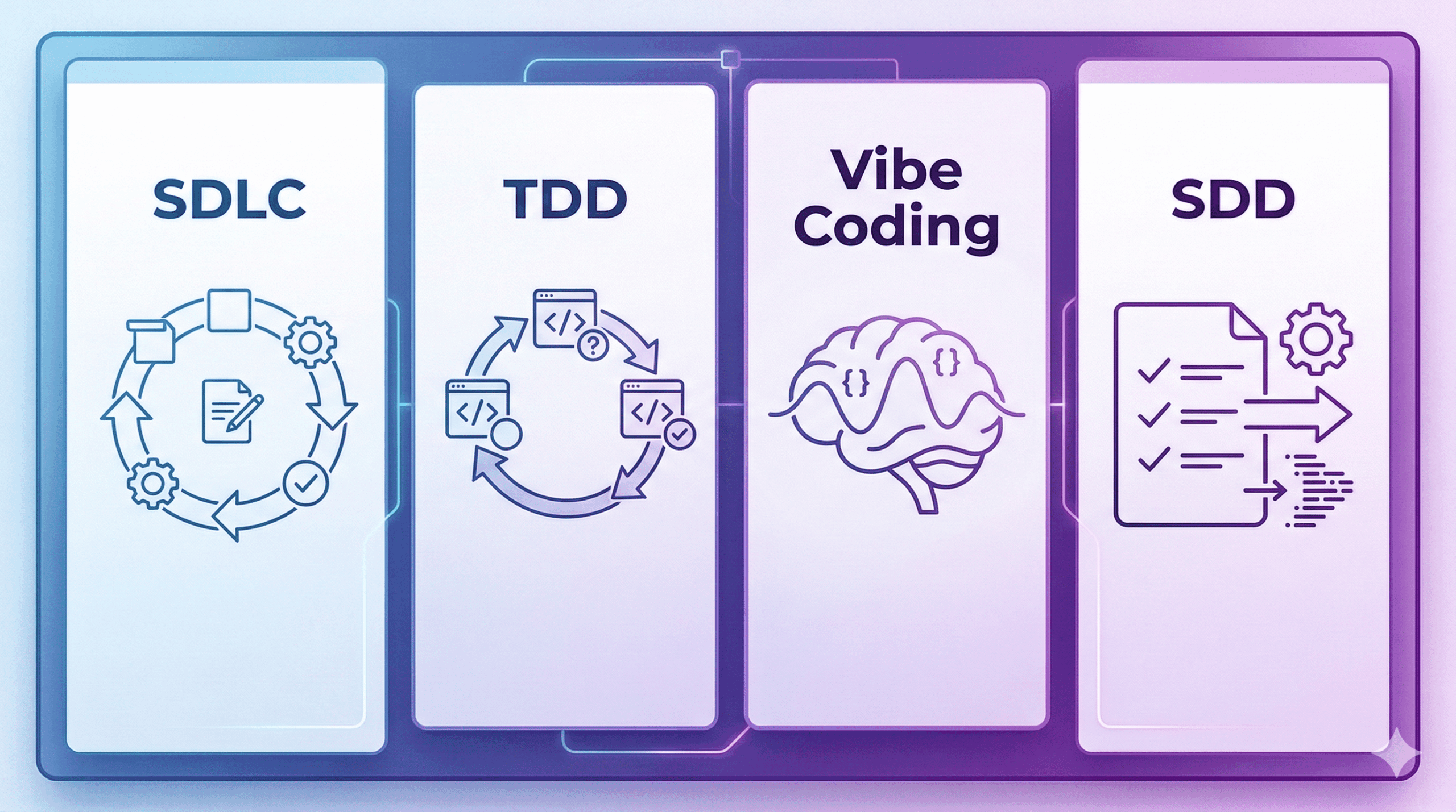 What it is: Write a living, machine-readable specification first — requirements, acceptance criteria, interfaces, test strategy. AI agent executes against the spec in small, scoped steps. Human governs intent, not code lines. Coined across GitHub Spec Kit, Amazon Kiro, and Thoughtworks by mid-2025.